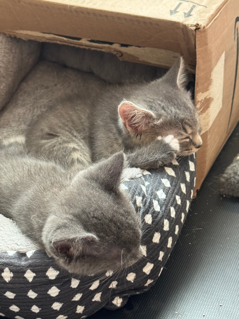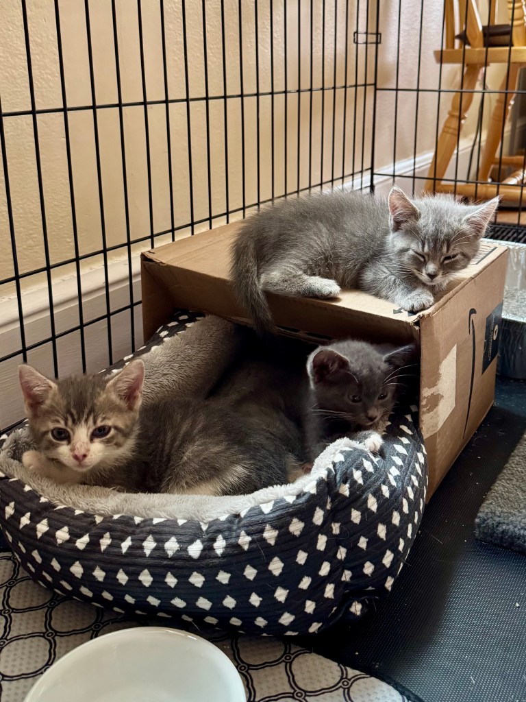 We’re taking it all day by day for now. They are growing like crazy and are so fun to watch. My husband said it best the other day during playtime, “Watching these kittens is pure, unadulterated joy.”