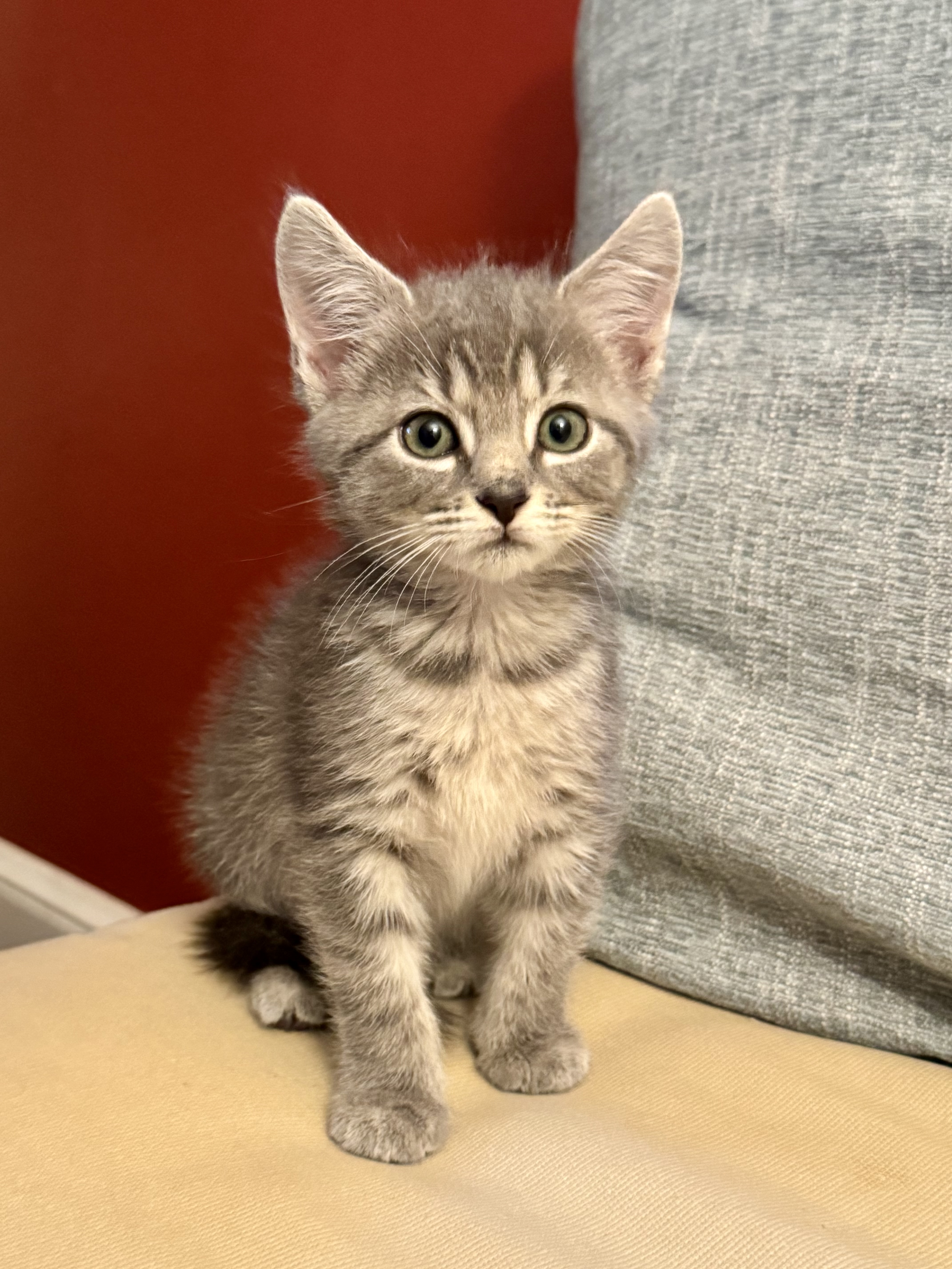 My friends couldn’t believe I wasn’t taking the cute gray kitten home right then and there. Out loud, I kept repeating, “I can’t take any more cats,” though my heart was saying Come on, one more little kitty can’t hurt. You already have ten. What’s one more?