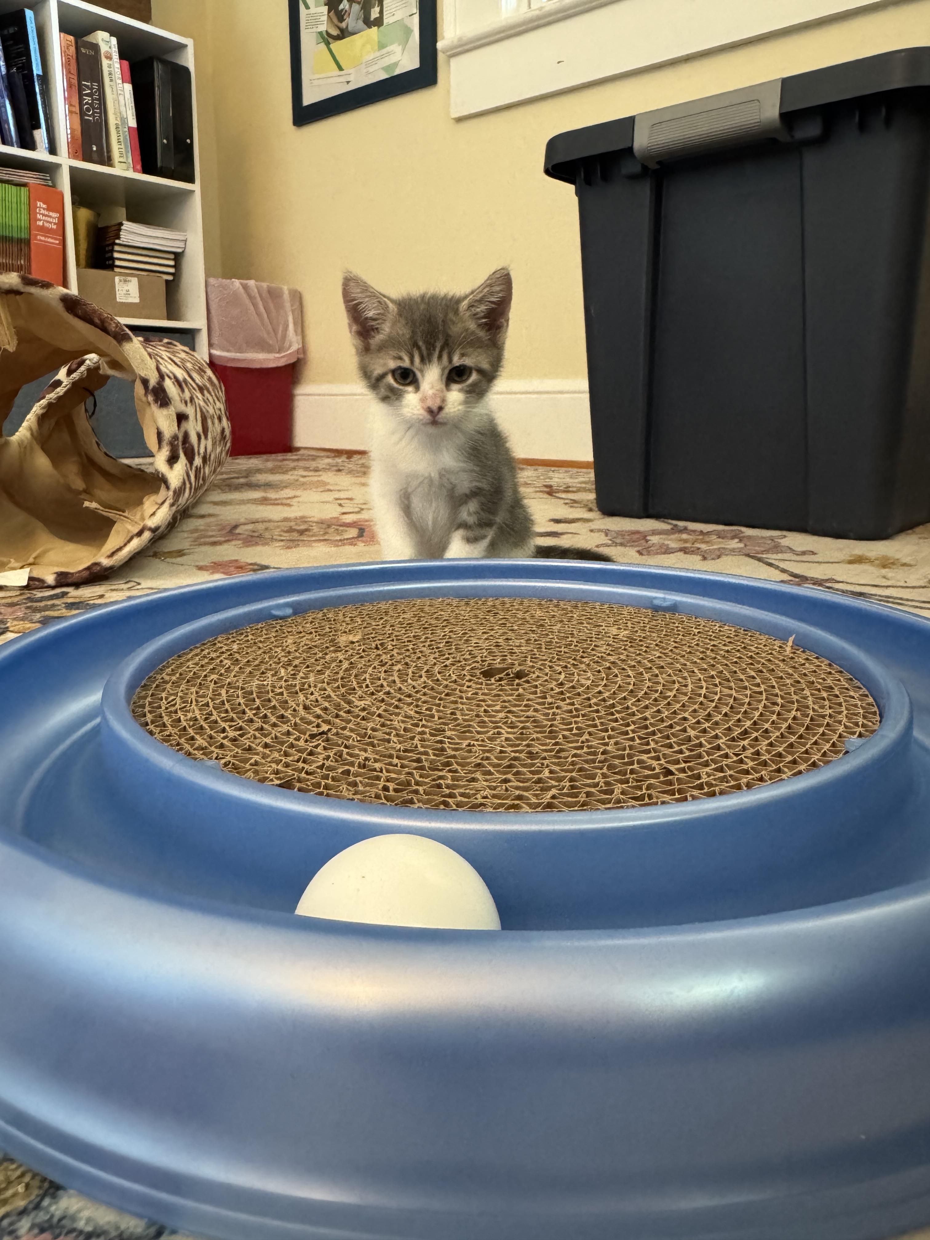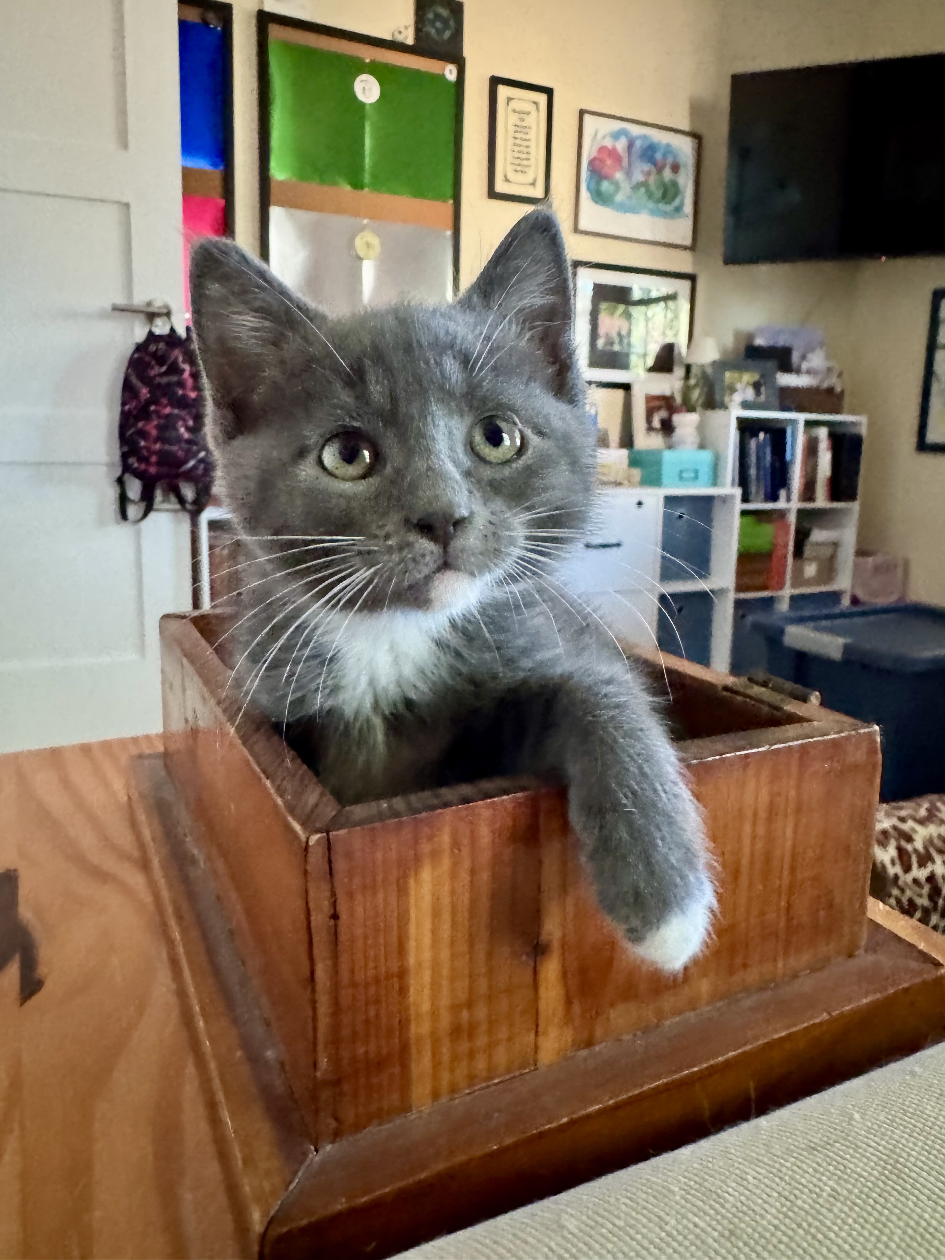 Now Fenn, Nixie, and Christopher are happy and living their best lives. We’re working on integration with the cat crew, but taking it slow. There’s a lot less hissing now, so that’s progress.