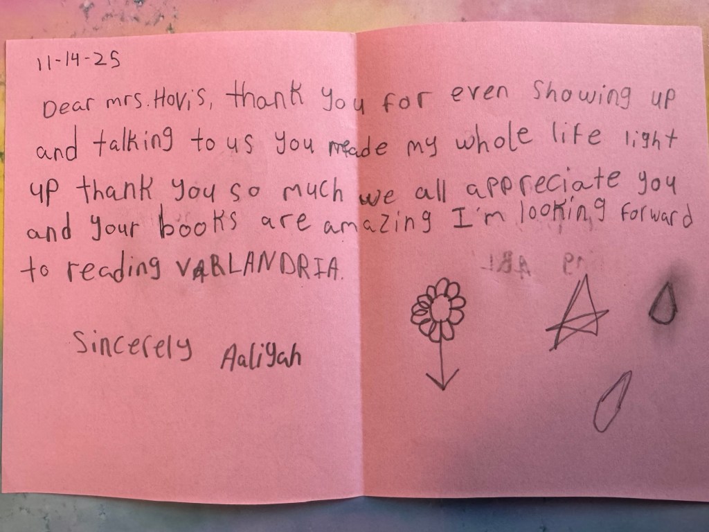 Aaliyah, I promise to keep showing up and talking to kids. You and your class made my “whole life light up” with your kind words. Thank you for reminding me of my purpose.
